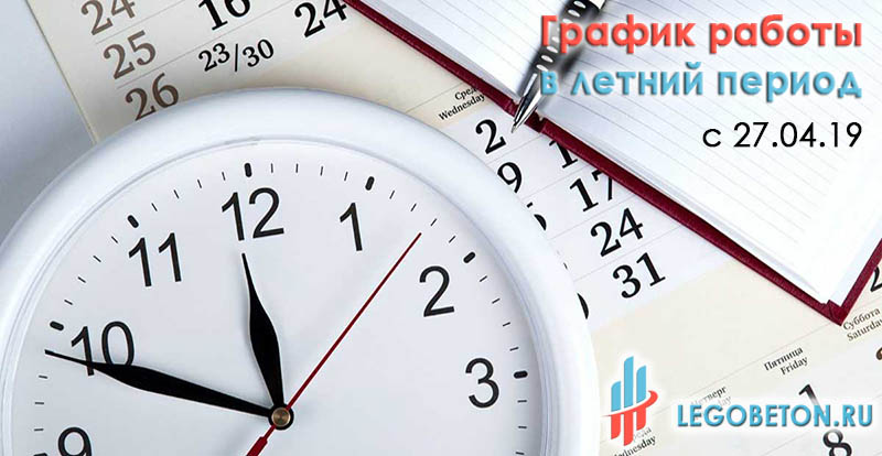 с 27.04.2019 интернет-магазин Легобетон работает в субботу с 10.00 до 17.00. В рабочие дни режим работы прежний 9.00-17.00 (до 20.00 - продажа и отгрузка со склада по договоренности)