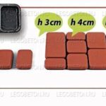 Стандартная глубина формы позволяет сформировать готовое изделие толщиной :4 см. Возможна поставки форм другой глубины при наличии таких в выбранном модельном ряде под заказ. Также возможно формирование более тонкого изделия при использовании меньшего объема цементной смеси загружаемой в форму.При выборе кол-ва форм — нужно учитывать, что необходимое кол-во формы «Брук Классика №3 камень» для изготовления 1 м2 брусчатки = 34 шт.