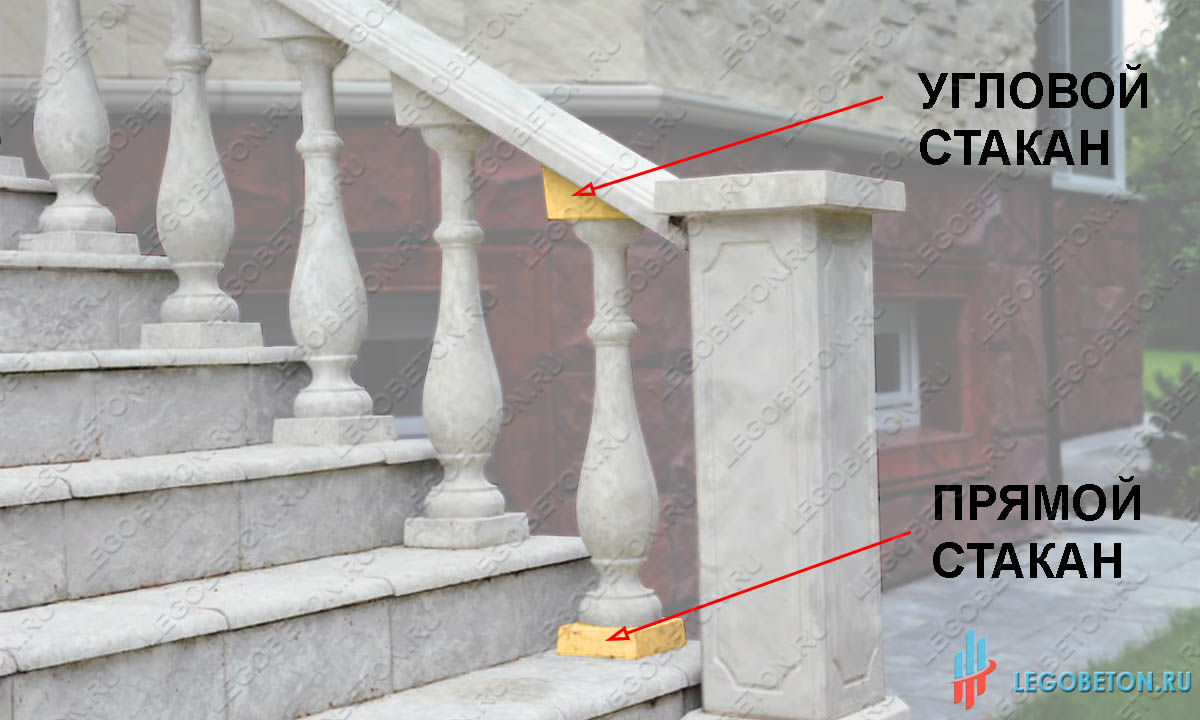 - угловой стакан — для монтажа балясин к перилам лестницы и тетивы