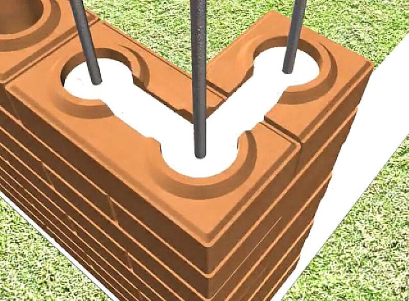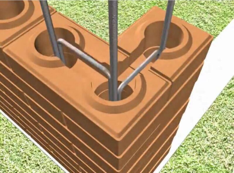 Особенности формы лего-кирпичей существенно облегчает их применение и повышает прочность возводимого объекта. В каждом кирпиче сформировано по два отверстия, которые немного выступают выше основной поверхности. Этот выступ исполняет роль своеобразного замка, центрирующего кирпич относительно возводимой стены при укладке и позволяющего строить те или иные строительные объекты своими руками, не прибегая к дорогостоящим услугам профессиональных каменщиков. В итоге получается идеально ровная поверхность, которую не нужно штукатурить снаружи и требующей минимальных работ при внутренней отделке.