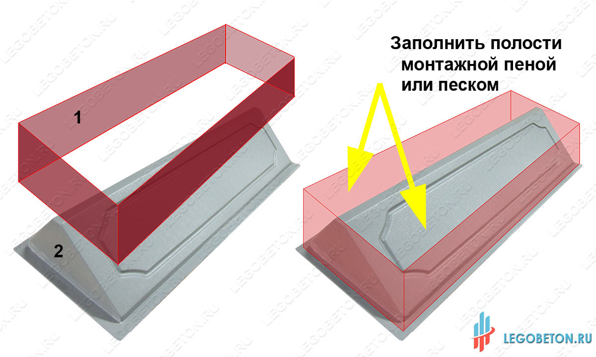 Несмотря на то, что формы изготовлены из высокопрочного АБС-пластика толщиной 2 мм, необходимо учитывать большой вес изделий и обращаться осторожно с заполненными формами и в процессе их расформовки. Для формы столба (тумба) необходимо изготовление дополнительной опалубки из фанеры или бруса.