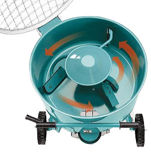 Именно такой принудительный растворосмеситель обеспечивает качественное перемешивание смеси без крупного заполнителя (щебень), а также позволяет эффективно перемешивать цементно-песчаные смеси с добавками (красящие пигменты для бетона, фиброволокно), сухие смеси с мелкодисперсным наполнителем, цветную резиновую крошку и.т.д.