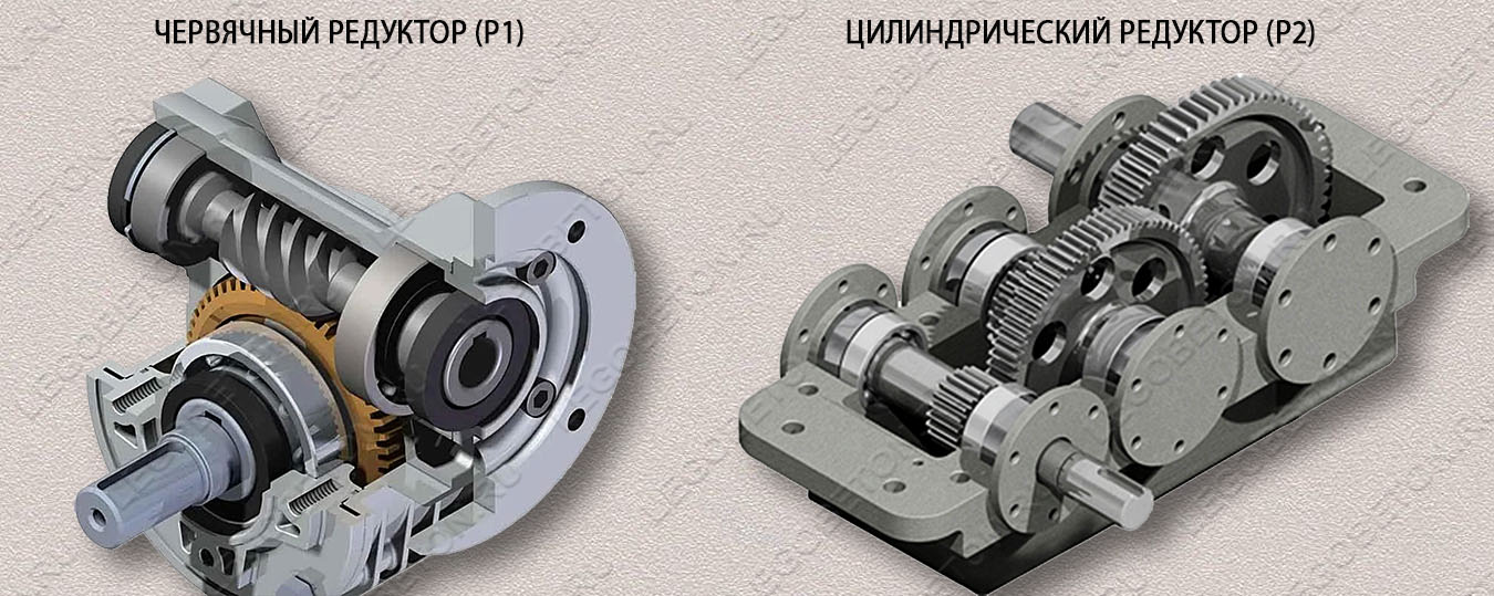 Преимуществом червячного редуктора является больший крутящий момент (что важно!), компактность, бесшумность меньшие требования к обслуживанию. Цилиндрический редуктор в свою очередь отличается повышенным КПД, меньшим нагревом и большим ресурсом работы при выполнении регламента обслуживания (контроль масла).